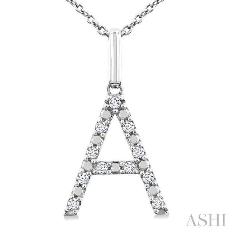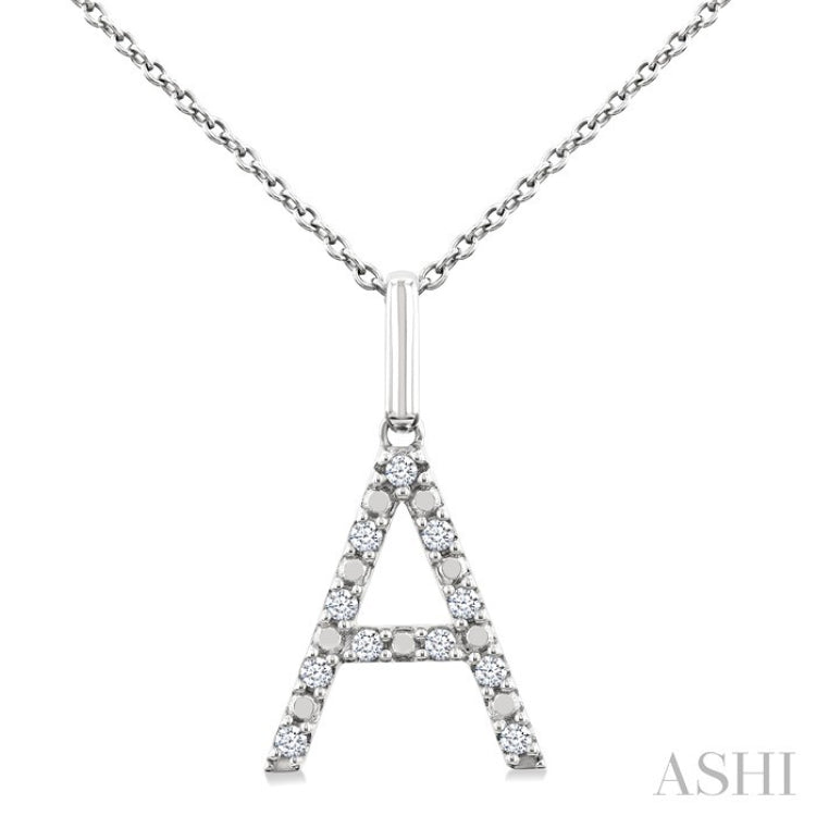 1/10 Ctw Initial 'A' Round Cut Diamond Fashion Pendant With Chain in Sterling Silver